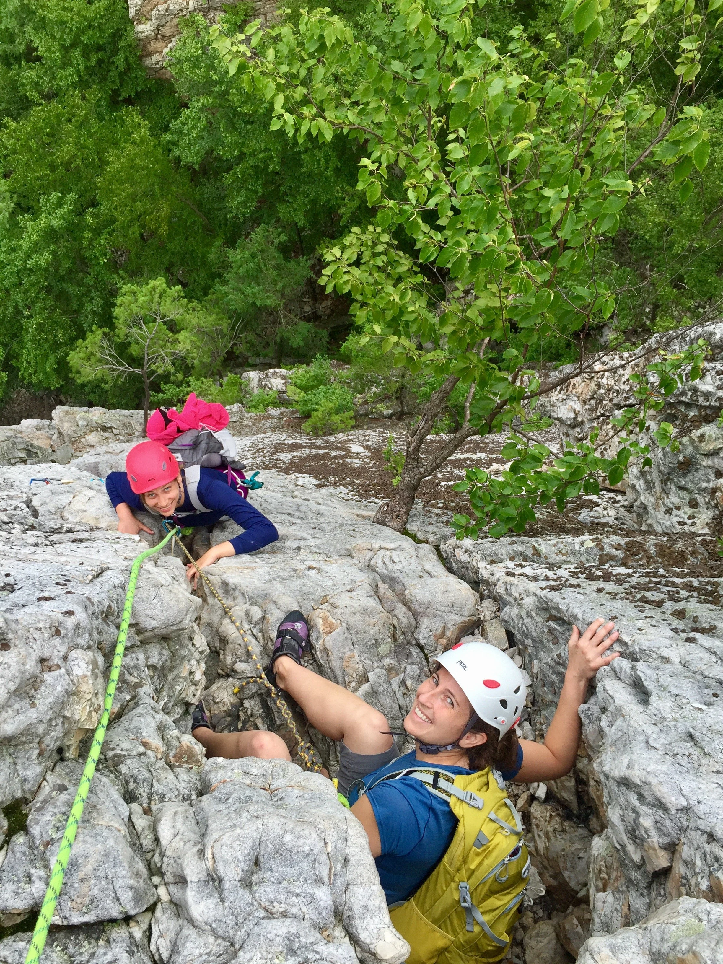 Ladies climbing Ecstasy Junior 5.4 at Seneca Rocks, WV